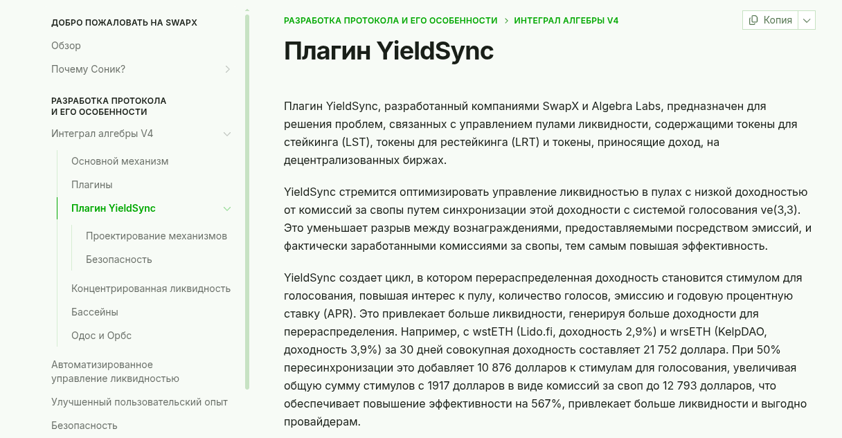 Отдельного внимания заслуживает плагин YieldSync, который создатели разработали в тесном партнерстве с Algebra Labs. Программный модуль синхронизирует доходность ликвидных токенов стейкинга с механизмами управления пулом. Метрики подтверждают интерес рынка: в системе SwapX заблокировано свыше 650 тысяч долларов, а суточный торговый оборот стабильно превышает 260 тысяч.