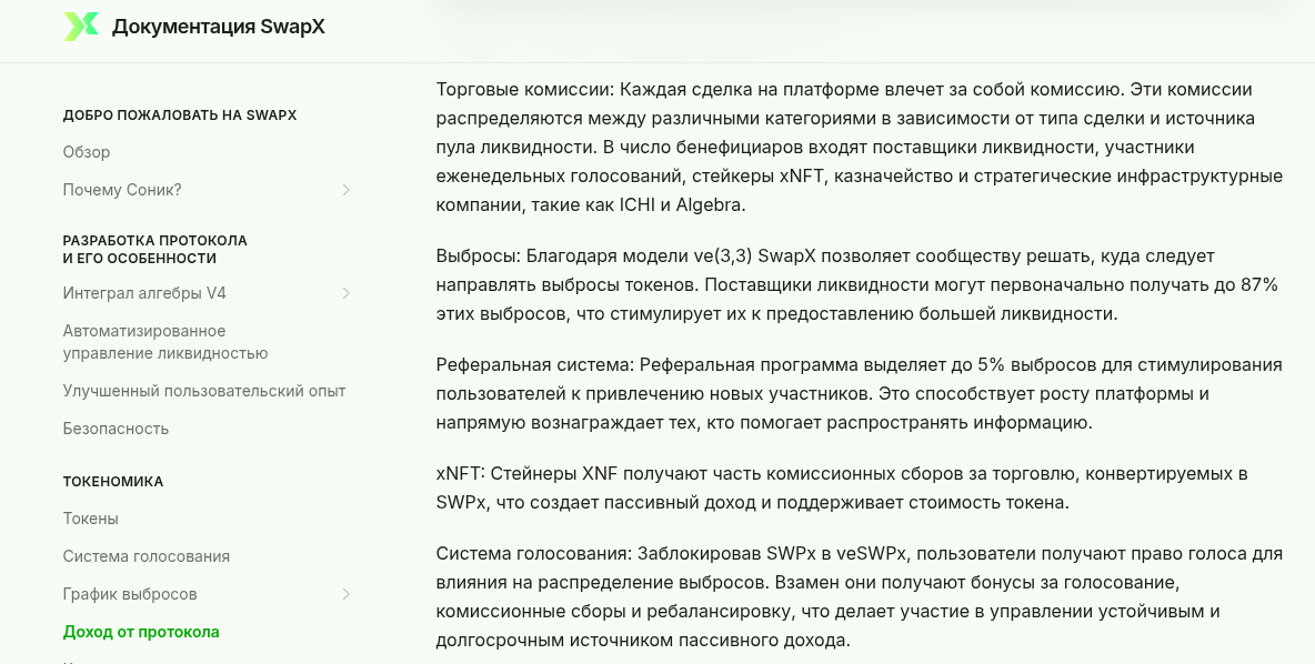 В основе экономической модели Swap X лежит гибридный механизм, который объединяет реальные торговые комиссии и масштабную раздачу внутренних активов. Инвесторы могут генерировать прибыль несколькими путями: