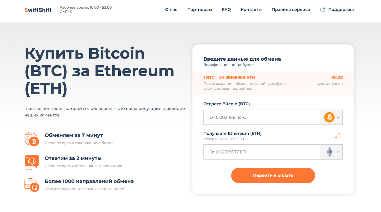 Обзор работы Swiftshift: отзывы клиентов, как работает обменник Swift Shift exchanger