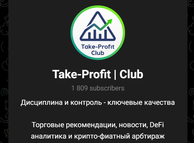 На официальный открытый ТГК Take profit club подписано 1,8 тысяч человек. Он работает с ноября 2021 года. В ноябре 2025 года было последнее сообщение. Публикации собирают 700-2000 просмотров, а возможность комментировать тут недоступна.
