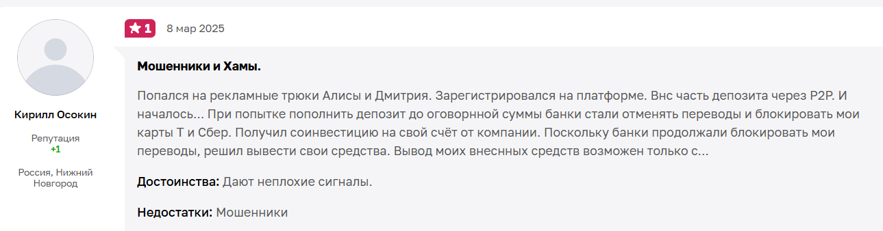 Мы не можем подтвердить надежность этого трейдера. Доверяйте только проверенным специалистам.