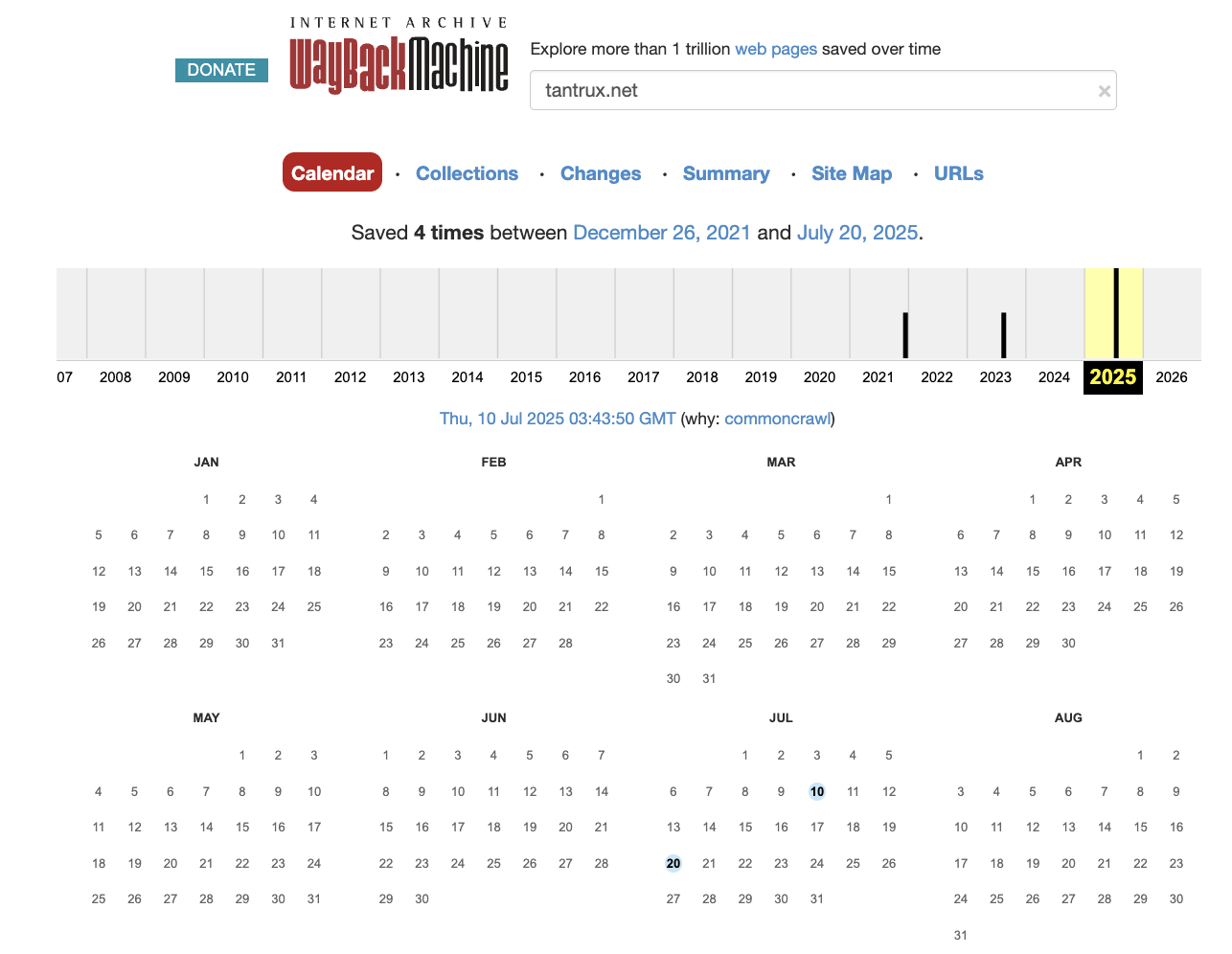Последний снэпшот бот «Веб-архива» зафиксировал в июле 2025-го года. Ни он, ни все предыдущие снимки не открываются.
