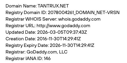 Также мы запросили данные домена tantrux net из WHOIS. В результате выяснили, что он был выдан в ноябре 2016-го, но есть нюанс. В последний раз изменения в DNS-записи адреса вносили 5 марта 2026-го года.
