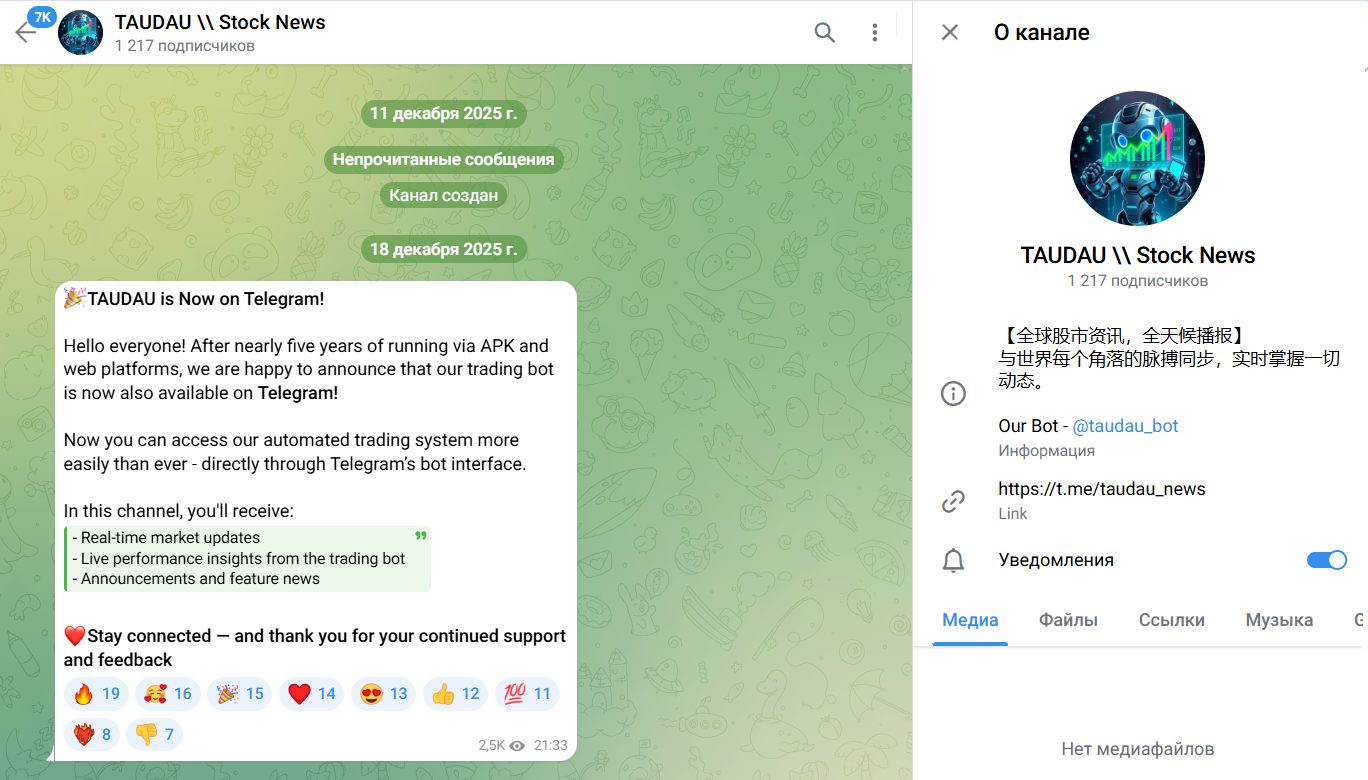 Основатели оставляют ссылку на тг-сообщество Taudau Stock News. Оно было создано в декабре 2025 года, и сейчас его поддерживают 1.2 тыс. подписчиков.