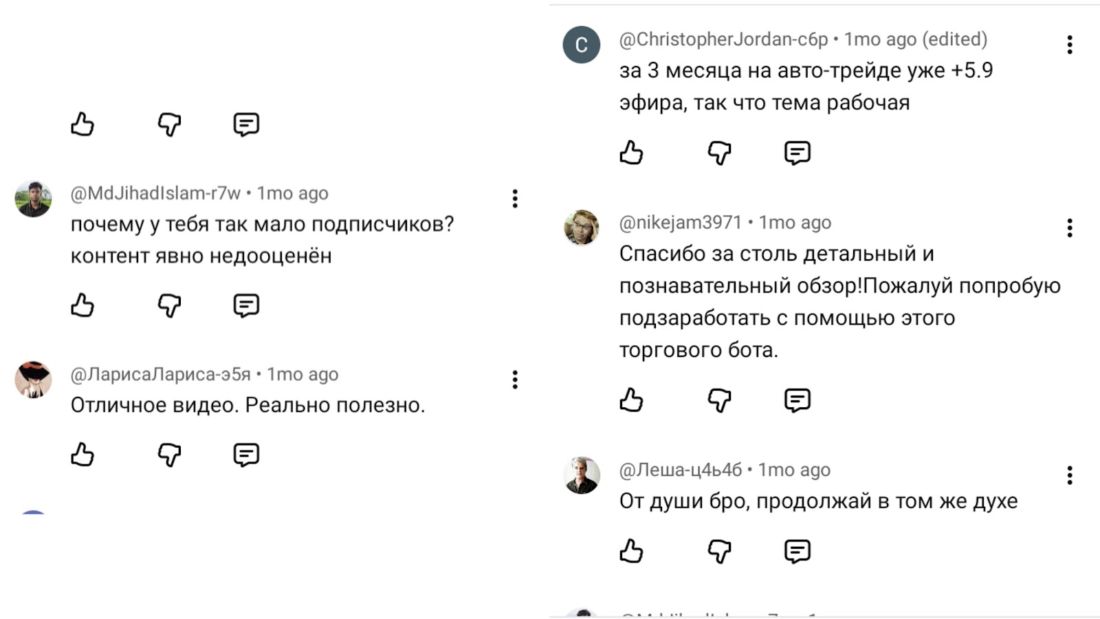 В Ютуб каналах у сторонних трейдеров есть положительные отзывы о Taudau bot, в которых пишут о высоком заработке.
