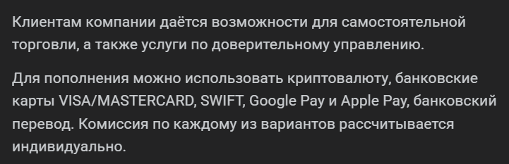 Какие типы валютных счетов представлены на проекте, тоже неизвестно, а также нет никакой информации о платежных инструментах, хотя на сторонних источниках пишут про возможность пополнить баланс с помощью банковских карт, криптовалютных кошельков и электронных систем.