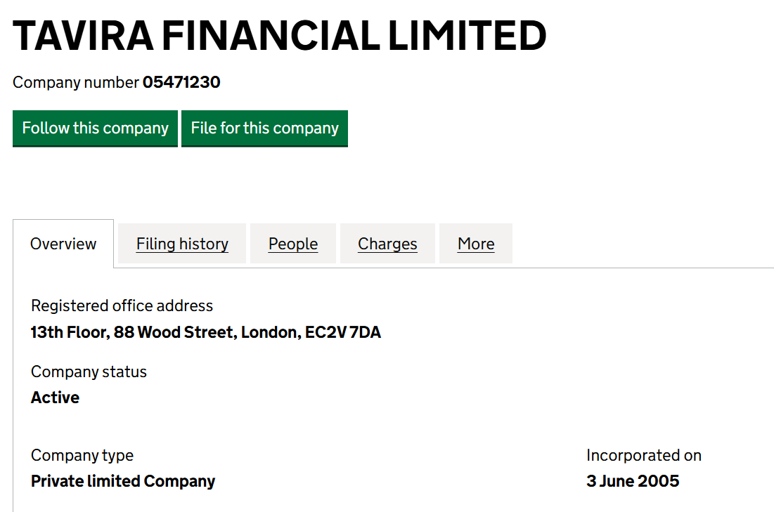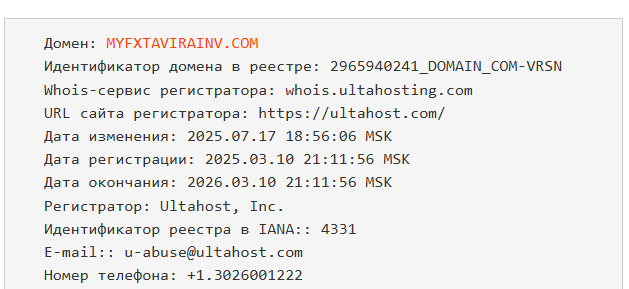 У проекта Tavira Financial Limited есть также домен MyFxTaviraInv com, на который ведут некоторые ссылки на сайте, но адрес недоступен, хотя создан на четыре месяца раньше основного.
