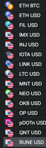 Клиенту доступна торговля примерно 30 криптовалютами, в том числе ETH, IOTA, RUNA и другими. Набор активов у этой площадки в разы меньше, чем у большинства конкурентов.