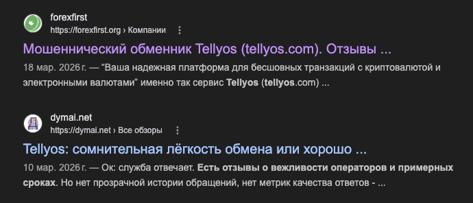 - по адресу tellyos com сайт эксчейнджера появился только в феврале или марте 2026-го года;