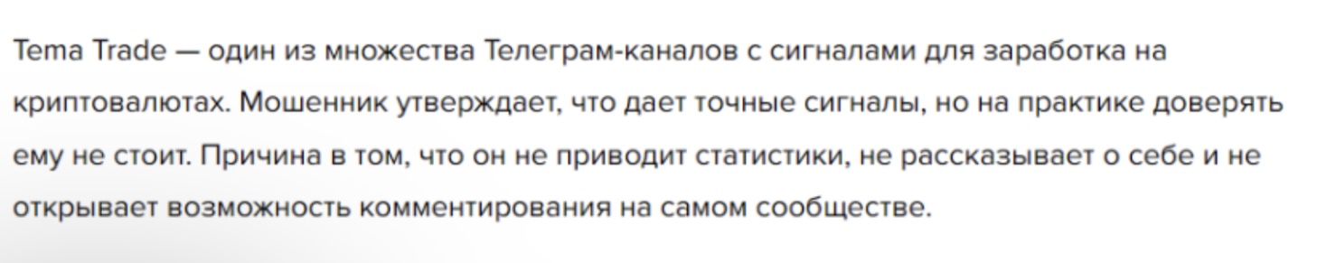 Конкретных пользовательских отзывов на проект Тема Трейд нет. Нам удалось найти только краткий экспертный комментарий.