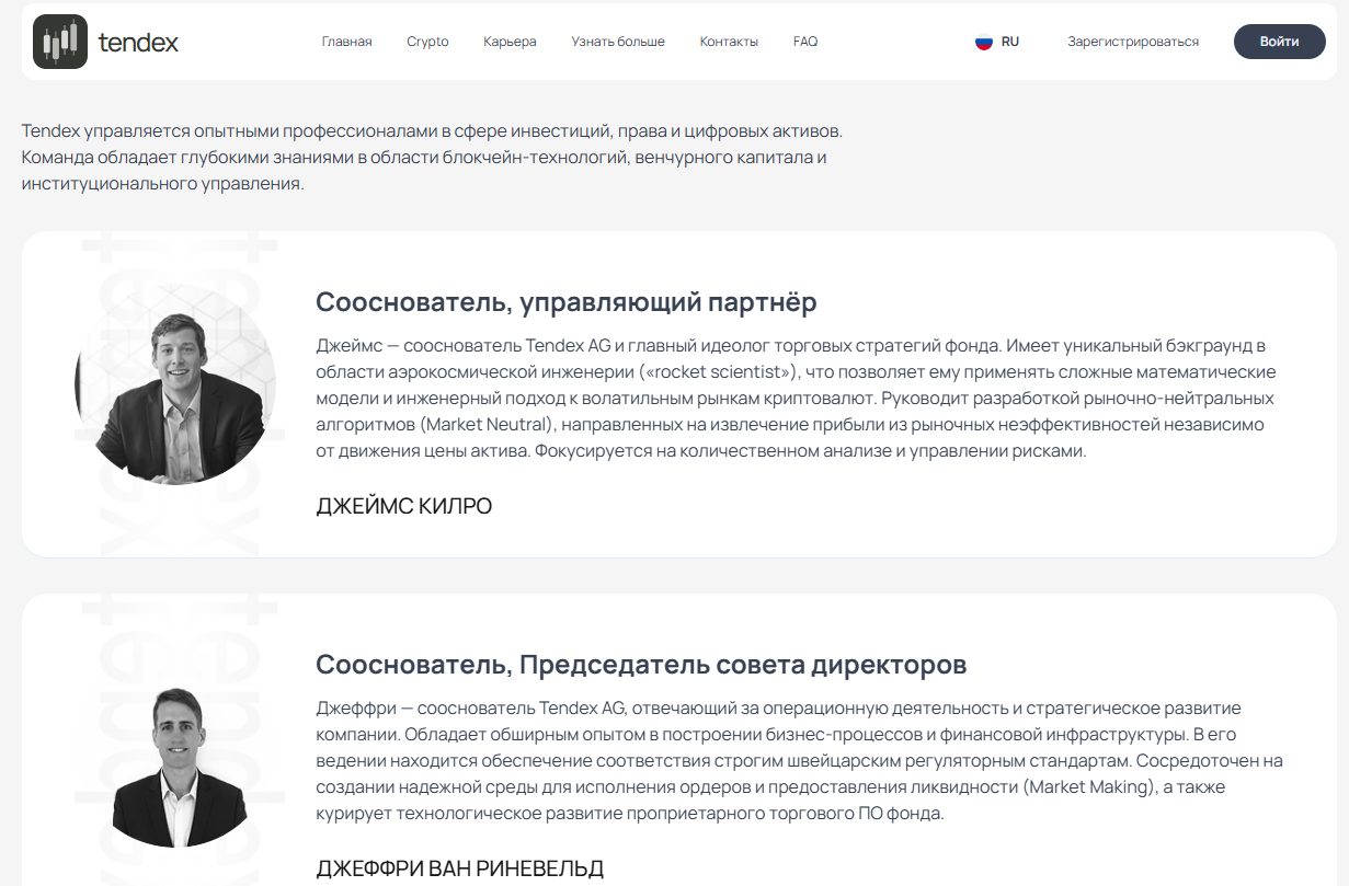 На Tendex capital есть раздел с информацией о компании. Как заявлено, основная философия фонда с 2019 – поиск нетривиальных активов, которые меньше всего зависят от внешних факторов. Основное направление при этом – рынок криптовалют.