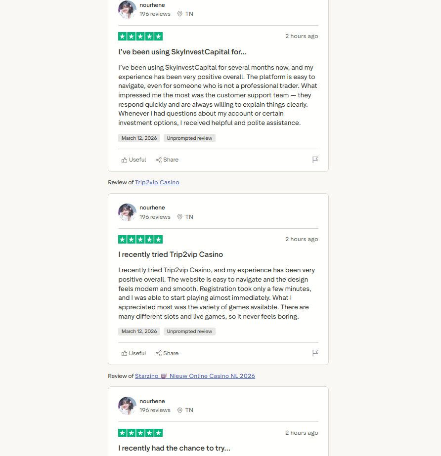 Например, один из авторов оставил 196 типовых отзывов за два месяца – все они посвящены новым казино, биржам бинарных опционов, брокерам. Подобному фидбэку не стоит доверять, так как высока вероятность того, что он заказан администрацией проекта и не является правдивым.
