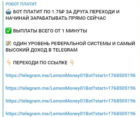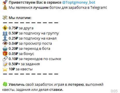 И это не единственная проблема, т.к. телеграмм бот Tg Top Money еще и постоянно отправляет ссылки на сторонние сомнительные ресурсы для заработка. В них уже можно не просто потерять время, но и финансы.
