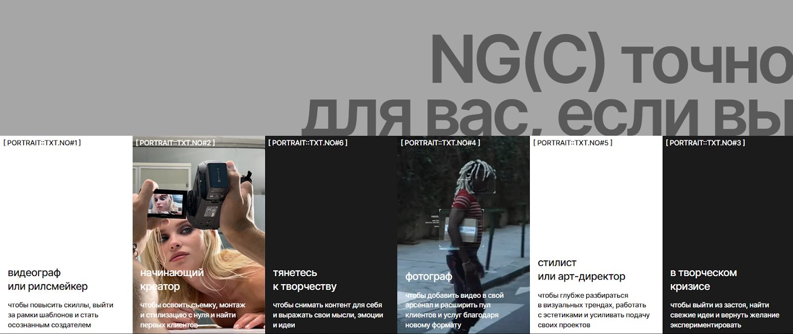 На официальном сайте представлена программа NGBC, которая позиционируется как наиболее полное обучение. В нее входит более 140 уроков, посвященных монтажу отснятого материала, самой съемке, режиссуре и сценариям. Курс условно разделен на два базовых направления, но фундаментальные уроки у них одинаковые. Разделение идет на криейшн и блогинг. Так каждый ученик сможет подобрать себе наиболее интересное для него направление.