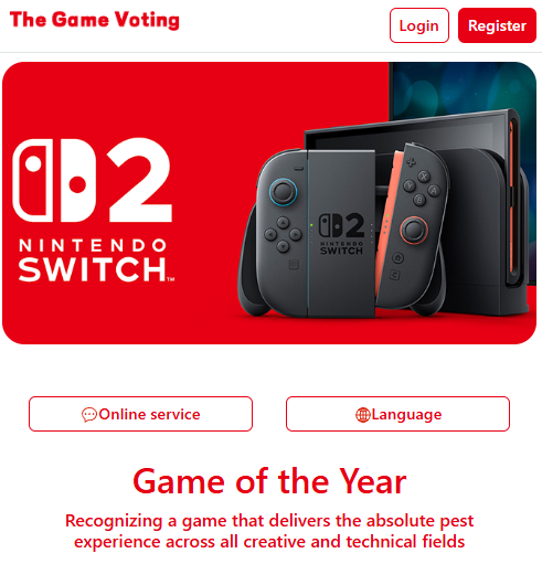 Сайт The Game Voting выглядит как простая страница для мобильных. Домен появился 10 октября 2025. Дизайн примитивный. Создатели утверждают, что проводят голосование за лучшую игру 2025 года. На странице 6 игр-номинантов. Победителем объявлена ASTRO BOT от Team Asobi. Голосование якобы завершено.