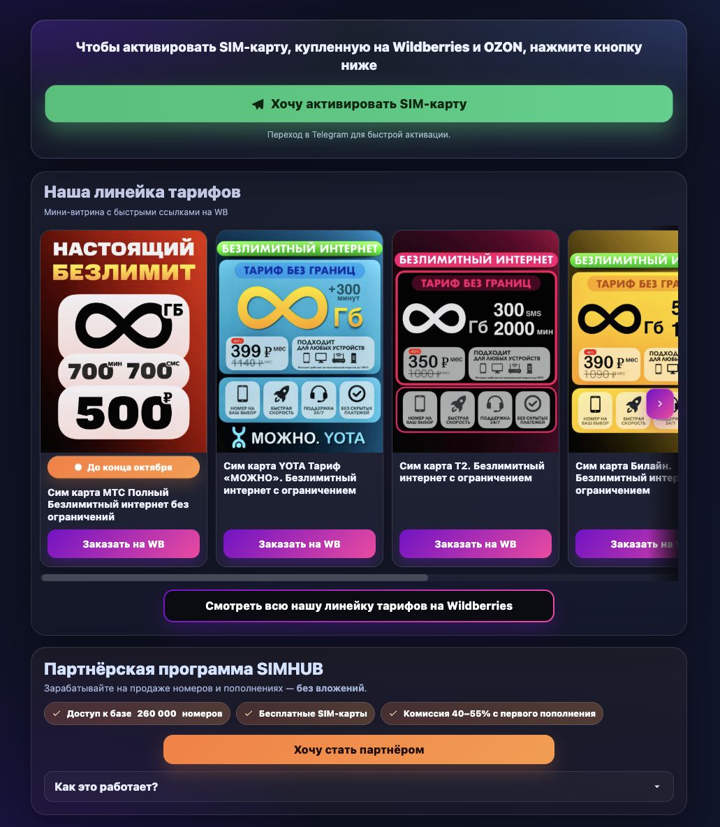 Tieeefdr — сервис, владельцы которого предоставляют услуги по активации купленных у определенного продавца на Wildberries и Ozon sim-карт российских операторов.