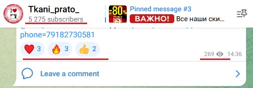 Стоит начать с того, что статистика и активность в социальных сетях магазина оставляет желать лучшего. В первую очередь нужно отметить несоответствие количества подписчиков и средней просматриваемости постов в основном тг-канале.