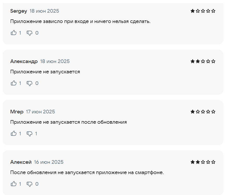 Люди рассказывают одно и то же: после обновления приложение будто ломается. У одних оно вообще не запускается, у других зависает на экране входа и не дает пройти авторизацию.