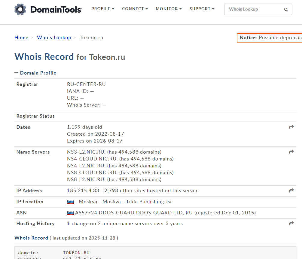 Сайт зарегистрирован 17 августа 2022 г., домен tokeon ru обслуживается у RU-CENTER и размещен на инфраструктуре Tilda.