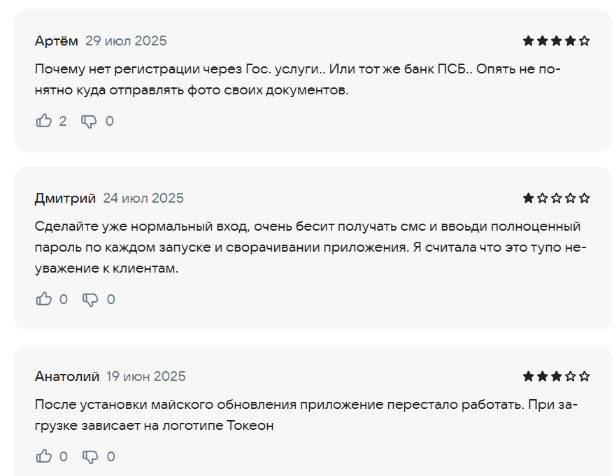 • Сложная система входа в приложение, вызывающая жалобы пользователей.