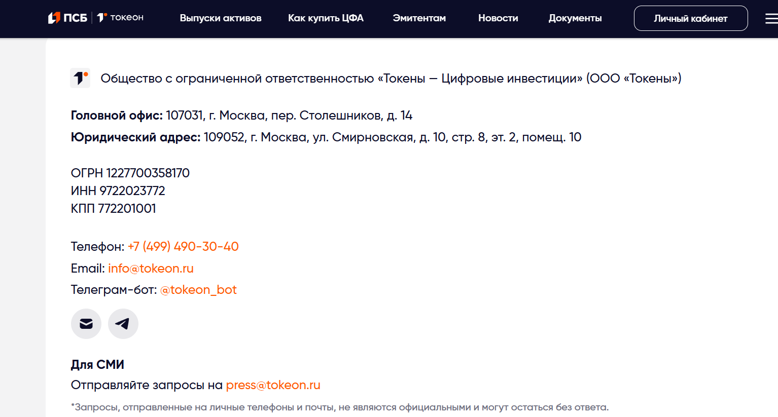 Информационные запросы для СМИ компания принимает только через официальный адрес press tokeon ru, подчеркивая, что любые обращения вне канала не считаются официальными и могут остаться без ответа.