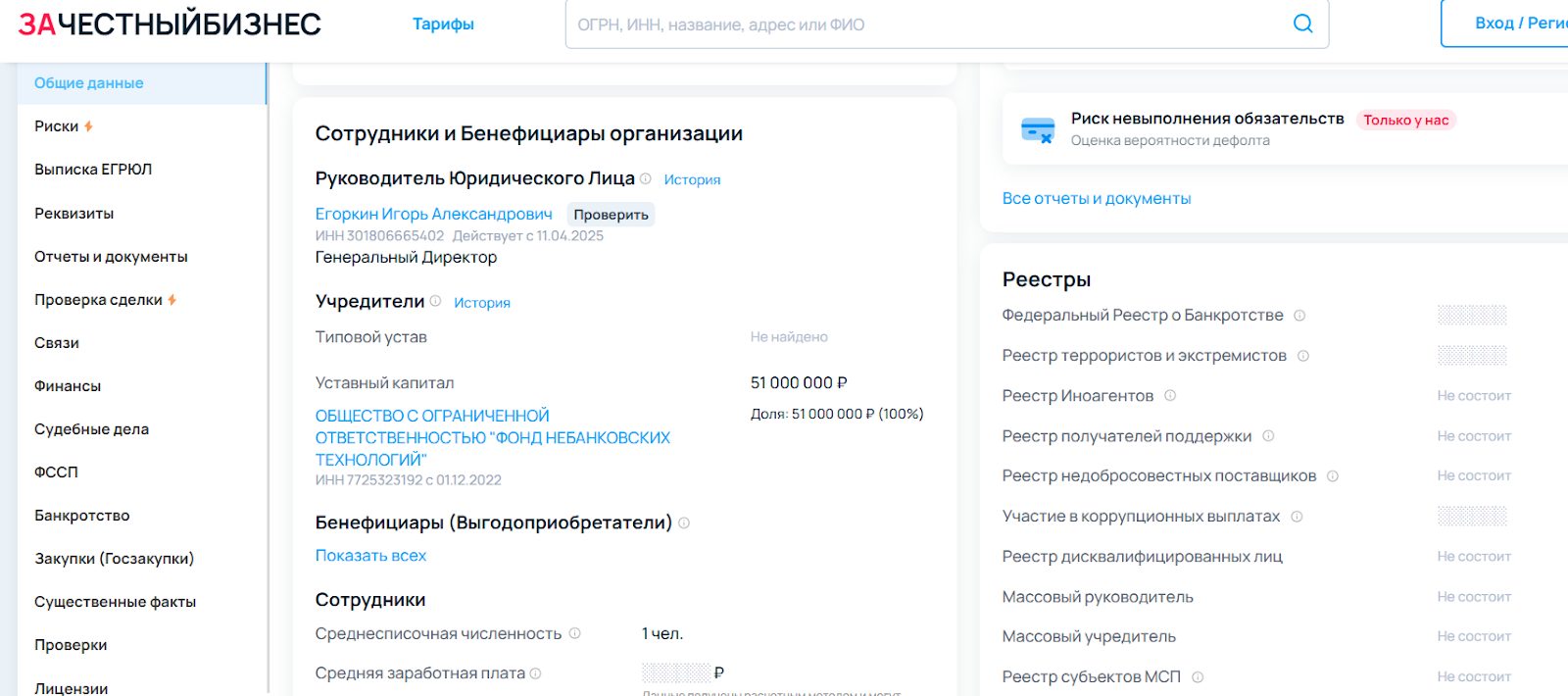 Есть вопросы и к тому, как устроен сам бизнес. По официальной отчетности у компании числится всего один сотрудник, что выглядит странно для оператора, через которого прошло более 136 миллиардов рублей в размещениях.