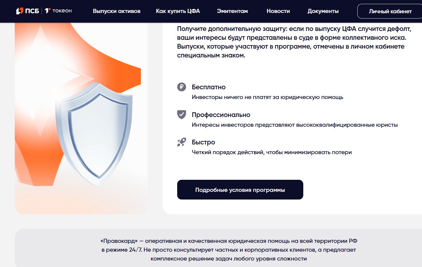 • Программа коллективной юридической защиты инвесторов “Правокард”.