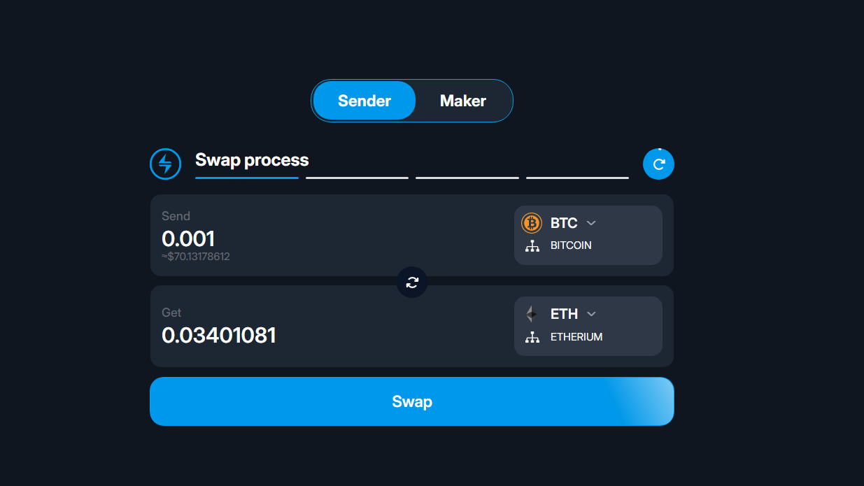 - сначала пользователь выбирает пару обмена, сумму;