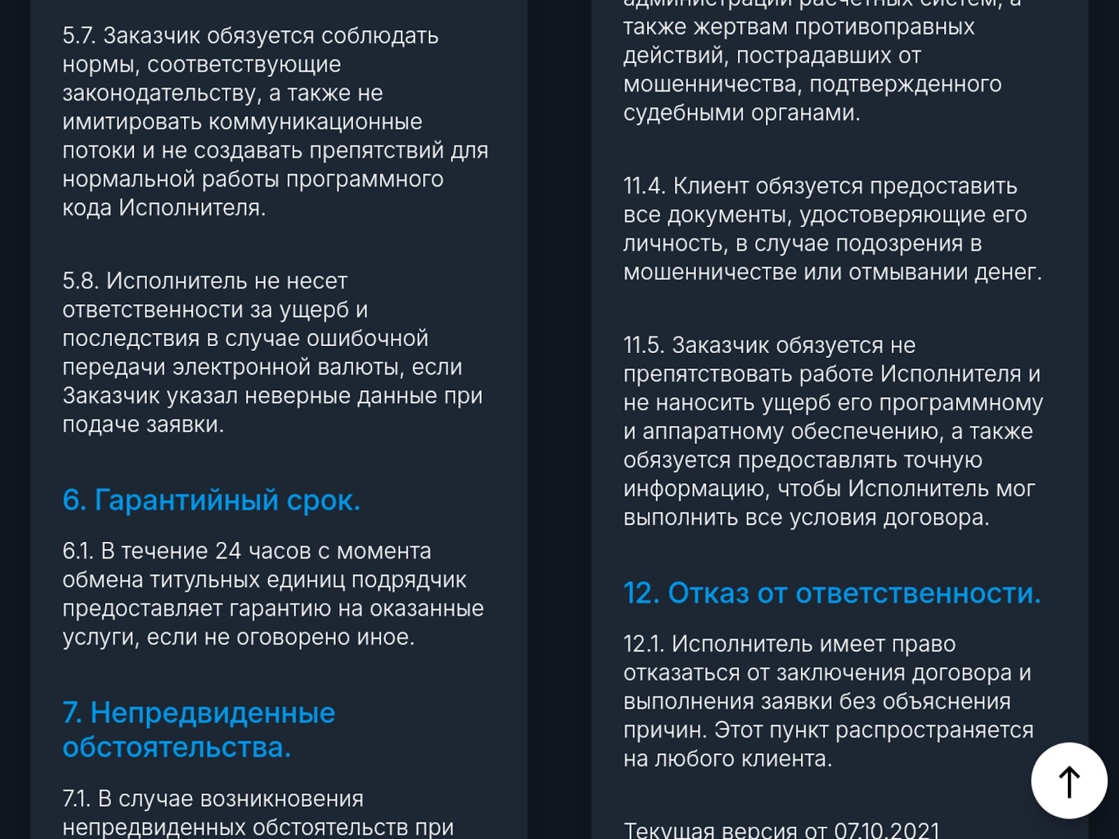 Рассматриваемый обменник работает без лицензии, и информации о нем минимум. Из правил сервиса, Тонконтракт может отказать в исполнении сделки без объяснения причин, а также не берет ответственности за любые убытки клиентов. Из других фактов о проекте: