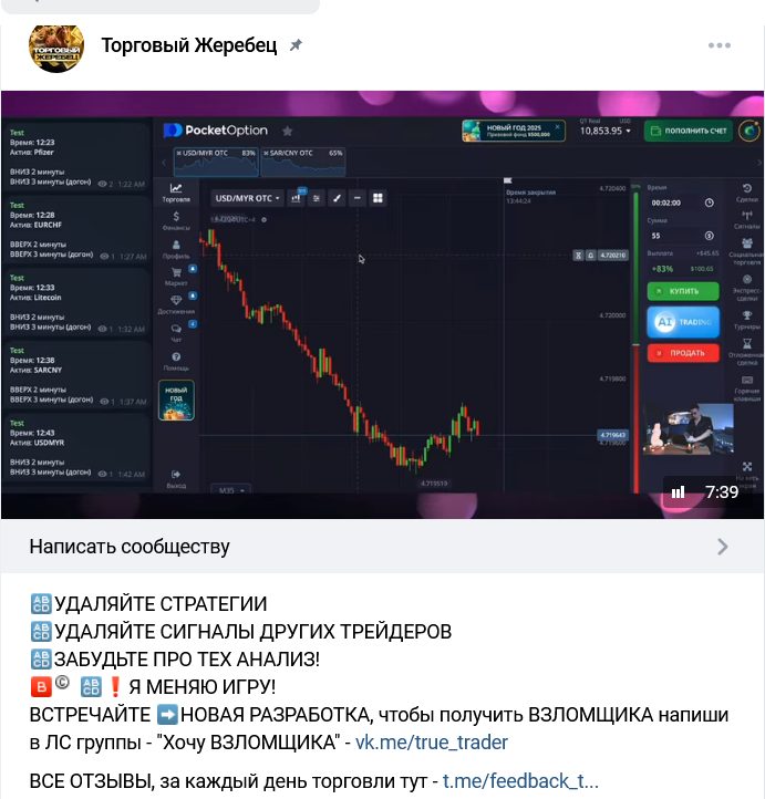 Мы внимательно изучили работу трейдера, установили, что он ведет несколько каналов в Telegram и группу в ВК. Также выяснили, что молодой человек продает доступ к боту-взломщику, однако о стоимости информации в открытом доступе нет. Проанализировав отзывы о «Торговый Жеребец» по Pocket Option, делаем выводы: