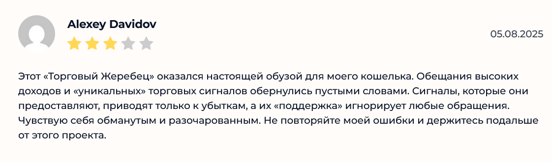 Мы не рекомендуем сотрудничать с анализируемым «экспертом» и автором группы в ВК «Торговый Жеребец», так как много подозрительных нюансов обнаружено при написании обзора.
