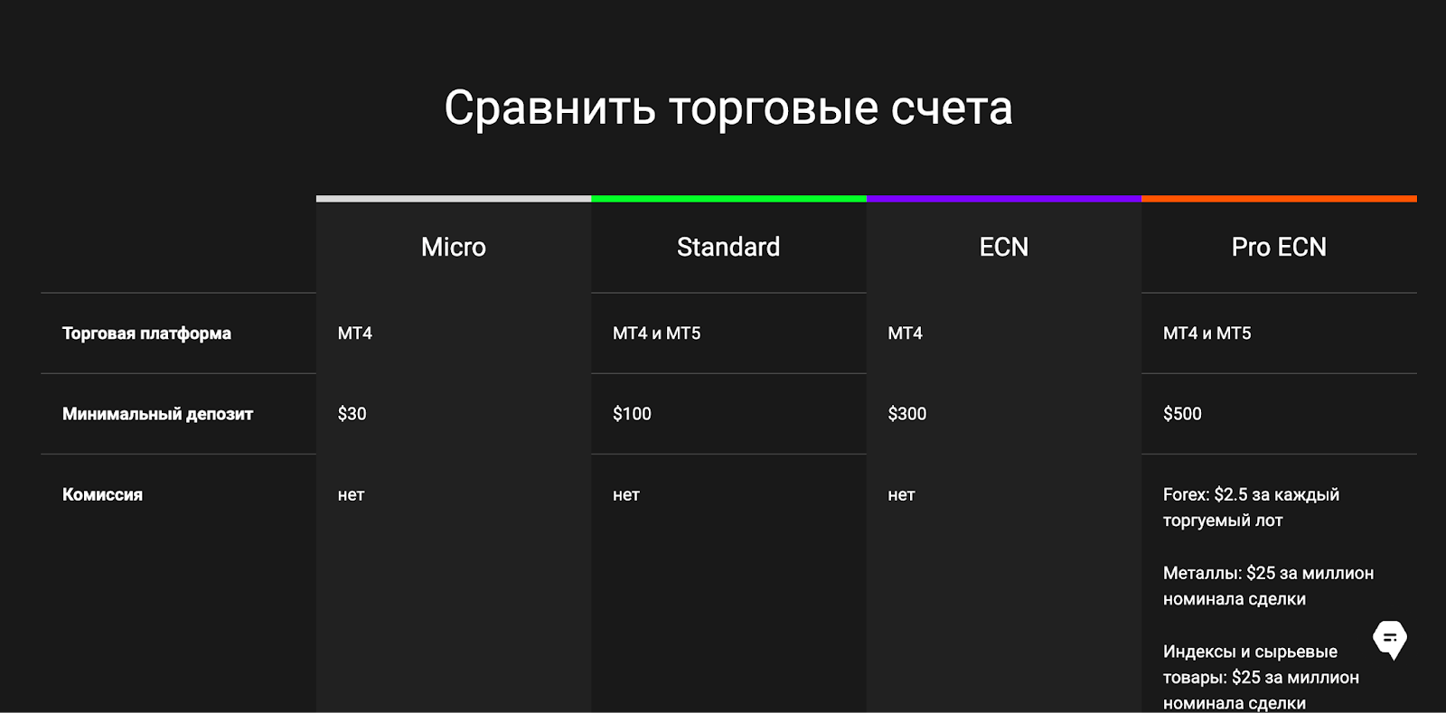 • микро-счета с минимальным депозитом и базовыми условиями;