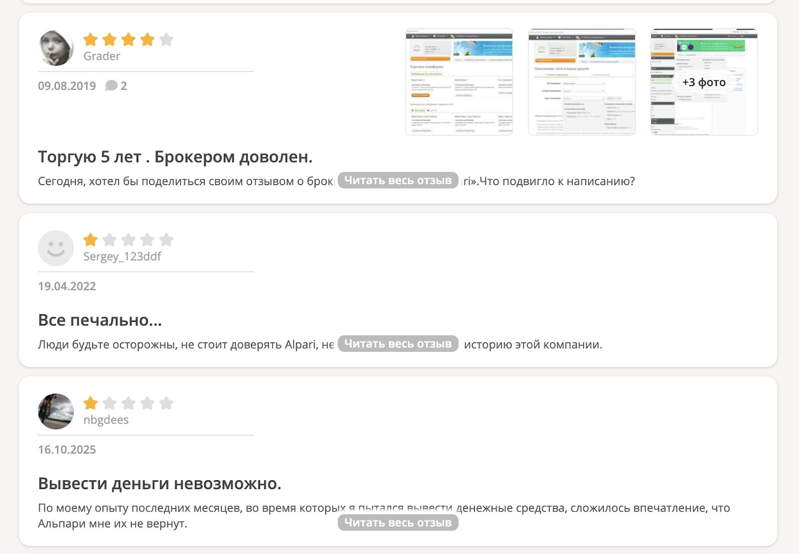 Репутация и отзывы о Альпари Трейдинг на различных сайтах оставляют желать лучшего. Многие пользователи оставляют негативные комментарии, в которых они жалуются на глюки платформы и затяжное закрытие ордеров. Некоторые даже говорят про слив депозита. Встречаются и редкие положительные отклики в сети.