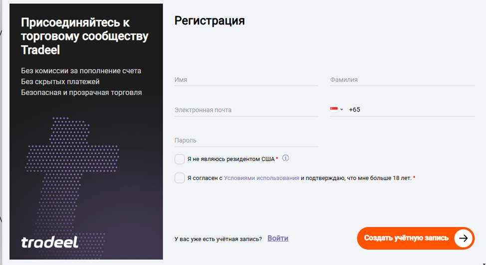 На сайте Tradeel Com есть раздел с часто задаваемыми вопросами, благодаря которому можно ознакомиться со всеми нюансами сотрудничества. Если все понятно, предлагается пройти регистрацию. В специальную форму добавляются необходимые данные: