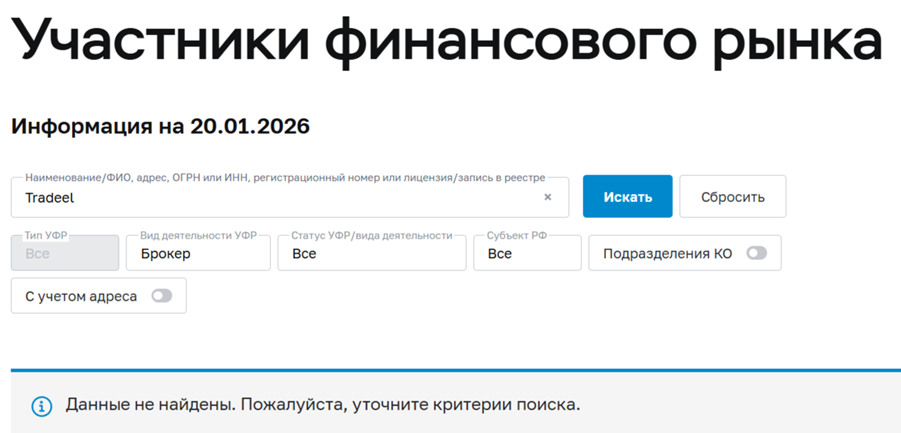Брокер Tradeel получит лицензию MISA, но этот орган нельзя считать авторитетным. Для работы в РФ у компании должен быть документ от Центрального Банка РФ. Такой лицензии у данной площадки нет. Это значит, что у трейдеров нет защиты в случае проблем. Они не смогут рассчитывать на правовую поддержку и возврат средств.