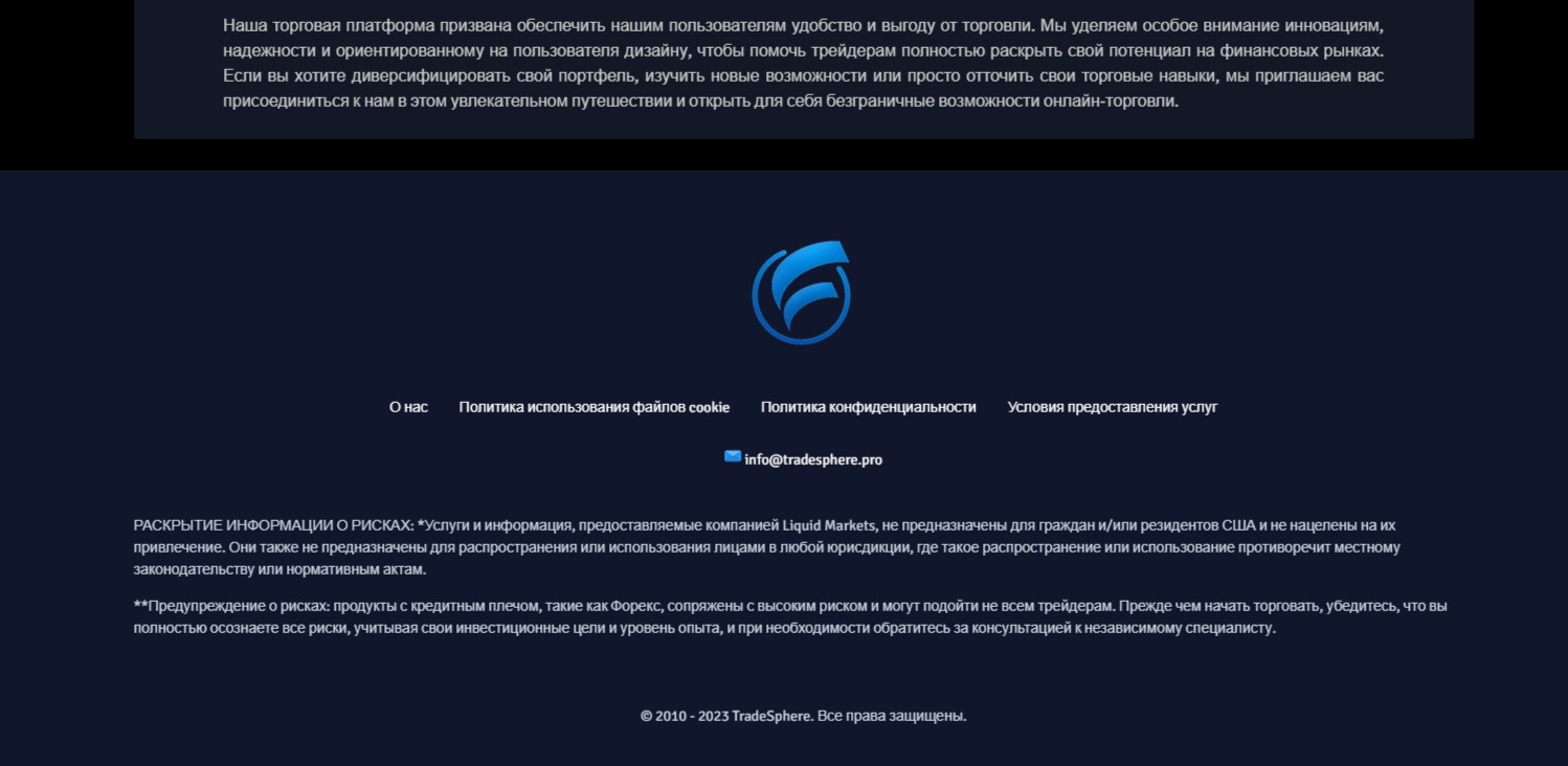 Обзор веб-сайта tradesphere pro