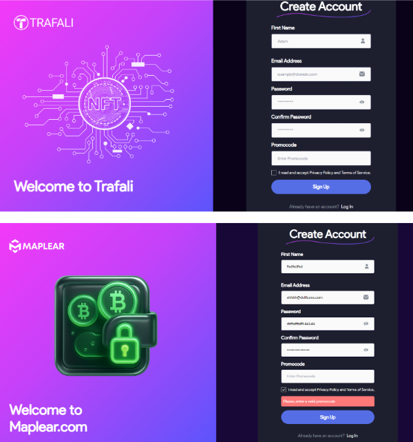 Мы воспользовались Trafali Bot, в котором есть отдельная форма для регистрации, но даже так мы не получили доступ к порталу. Созданные логи не подходят для доступа к личному кабинету на сайте, что лишний раз доказывает фейковую работу всей системы.