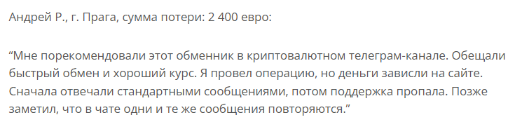 - Данные на сайте обменника неправдивые, что заставляет подозревать мошенничество собственников.