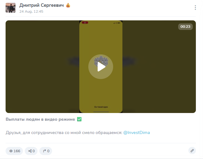 В качестве подтверждений своей честности автор приводил записи экрана, где якобы демонстрировались выплаты клиентам. Однако даже на этом этапе возникали вопросы. В августе 2025 года автор приводил запись с приложения Т-Банка, но на нем еще был логотип Тинькофф-Банка. Заметим, что банк был переименован и сменил логотип задолго до этого. То есть Дмитрий использовал старые ролики. Возможно, что он ведет сообщества с раскрутками счета уже не первый год.