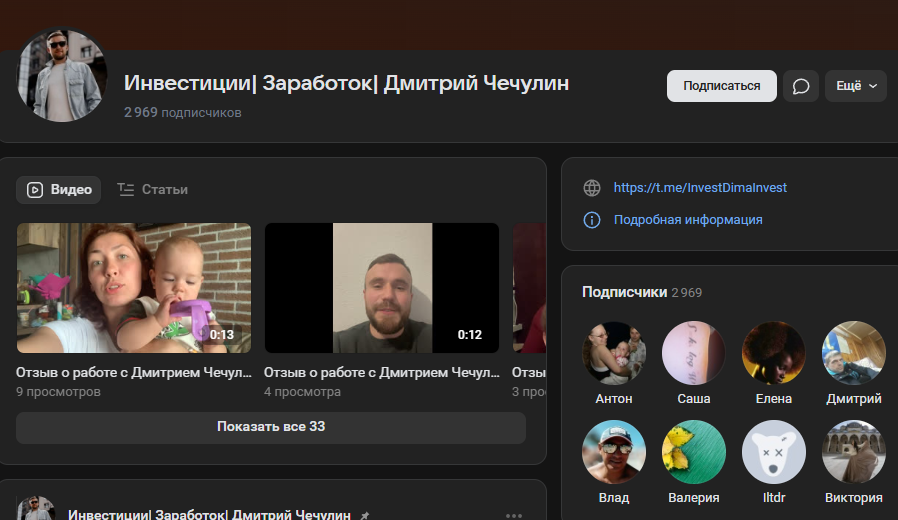 Трейдер Дмитрий Сергеевич в VK и Telegram – отзывы об инвестициях, разбор предложений для клиентов