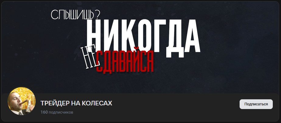 Группа «Трейдер На Колесах» во «ВКонтакте» существует с 2021 года, но на нее подписано всего 160 человек – в ленте проекта выкладывают ссылки на посты автора в других социальных сетях, тут не найти уникального бесплатного контента.