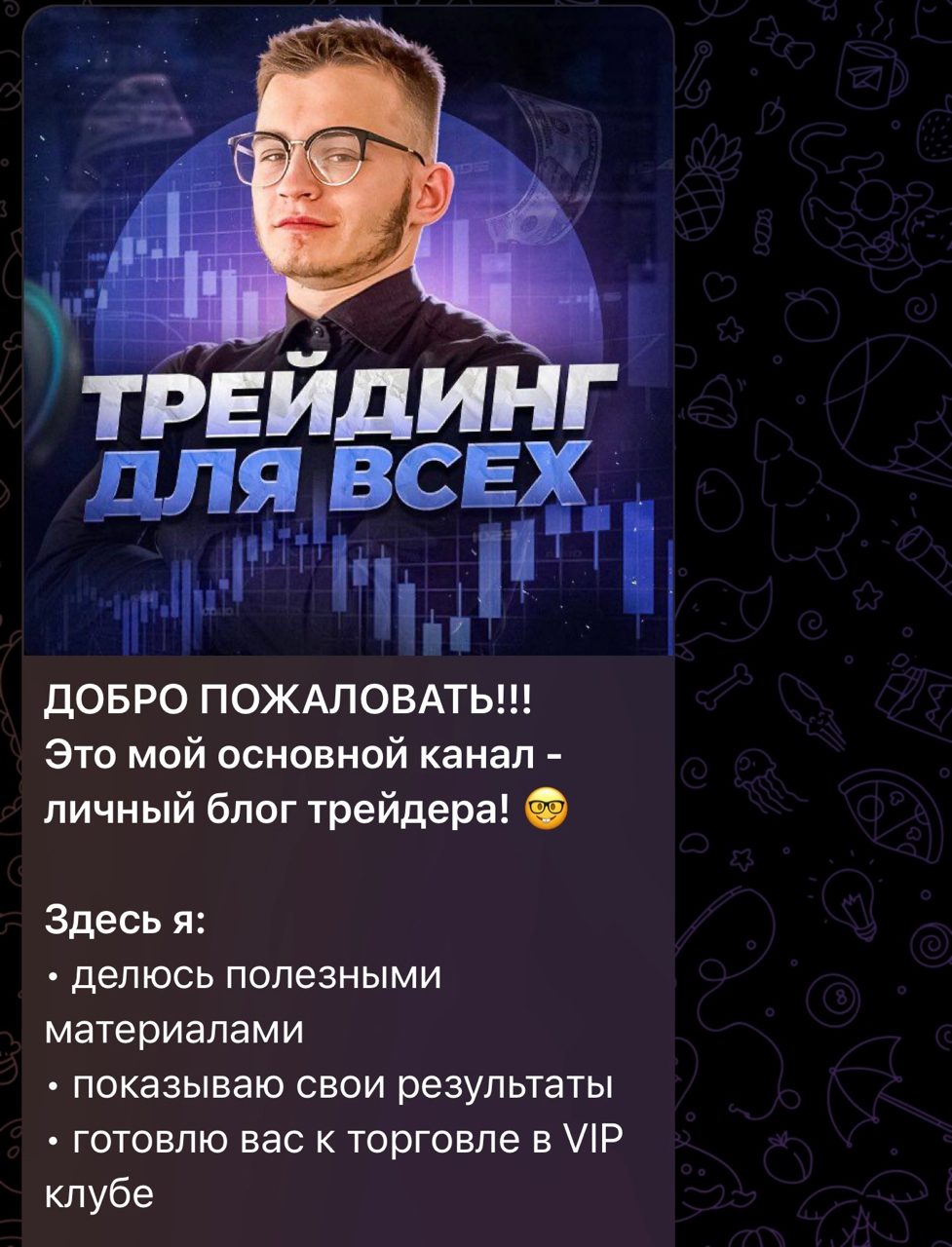 «Трейдинг для всех инвестиции» – телеграм-канал трейдера по имени Павел. Мужчина создал аккаунт, чтобы поделиться опытом и набрать единомышленников для совместных торговых сессий в свой закрытый клуб. Стоит ли в него вступать и насколько полезен на самом деле контент на канале, расскажем в обзоре.