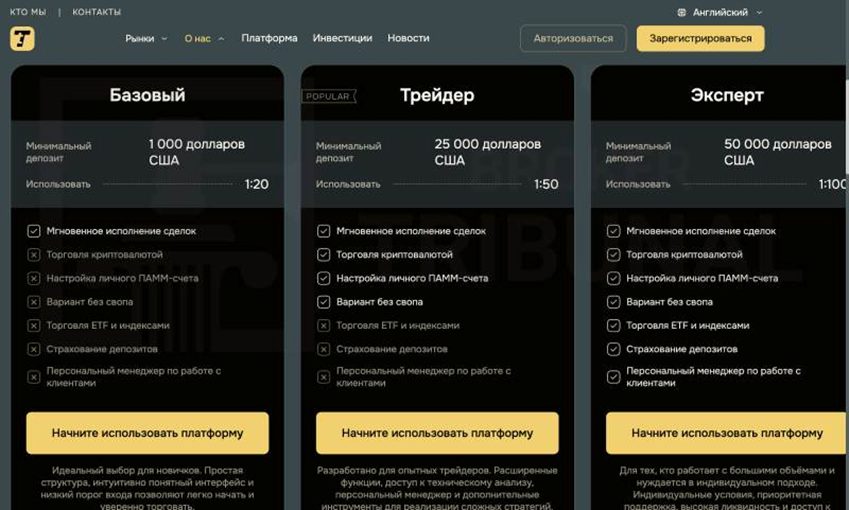 На сайте Trelvona Com необходимо выбрать подходящий торговый счет: «Базовый», «Трейдер» или «Эксперт». В каждом свои условия и правила. При выборе «Базового» тарифа нужно инвестировать с 1000 долларов, а если активировать «Трейдер», то с 25 000. Обладателям «Эксперта» следует вкладываться с 50 000.