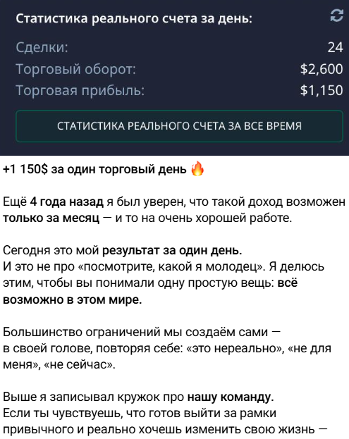 Конечная задача наставника — убедить зрителя написать ему в личку и вступить в команду «Трейдера с Мариуполя».