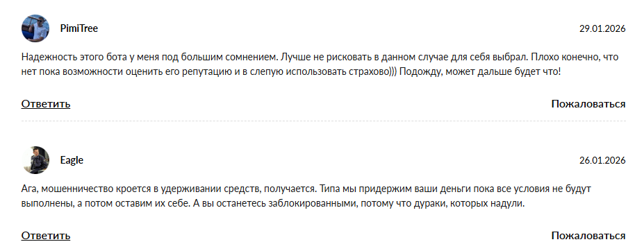 Положительных отзывов о работе этого проекта нет. В отрицательных комментариях пользователи называют Troudmarke bot обманом. Они не считают телеграмм-бота надежным, поэтому не рекомендуют тратить на него свое время.