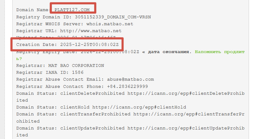 На сайте брокера находится общая информация о платформе, финансовые условия и форма для регистрации. Однако, элементарная проверка показала, что владельцы врут пользователям с самого начала. Домен tsb platt127 com зарегистрирован в конце декабря 2025 года. Это означает, что фирма работает около месяца, что расходится с утверждением о многолетнем опыте.