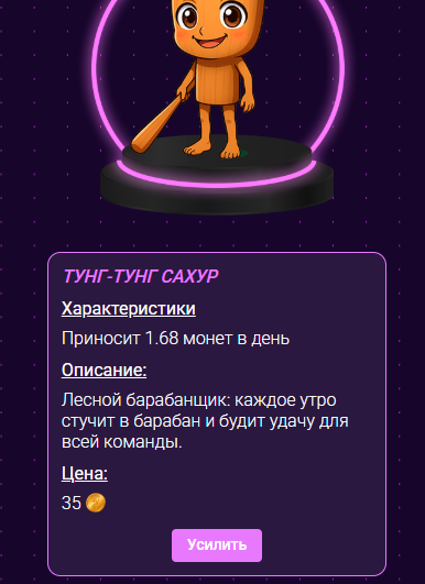 Tung Tung Friends в Телеграм – это мини-апп для заработка прямо в Telegram. Сервис использует изображения “брейнрот” персонажей и якобы позволяет получать автоматический доход. Однако в обещания легких денег на пассиве верится с трудом, т.к. предложенная схема больше похожа на финансовую пирамиду. Далее в статье более подробно разберем, что представляет собой сервис.