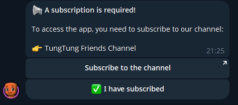 Для запуска приложения необходимо подписаться на официальный канал, без этого начать играть невозможно.