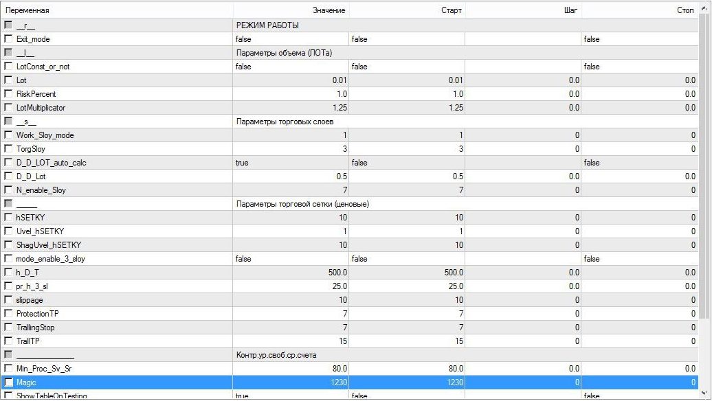 Советник совместим с Meta Trader 4, устанавливается он обычно копированием файлов в папку MT4, после чего ПО должно отобразиться в интерфейсе терминала. После запуска доступна настройка основных параметров Turbo Profit, таких как TorSloy, LotMultiplicator, RiskPercent, Slippage Magic, для которых можно выбрать значение, шаг, старт и момент остановки.