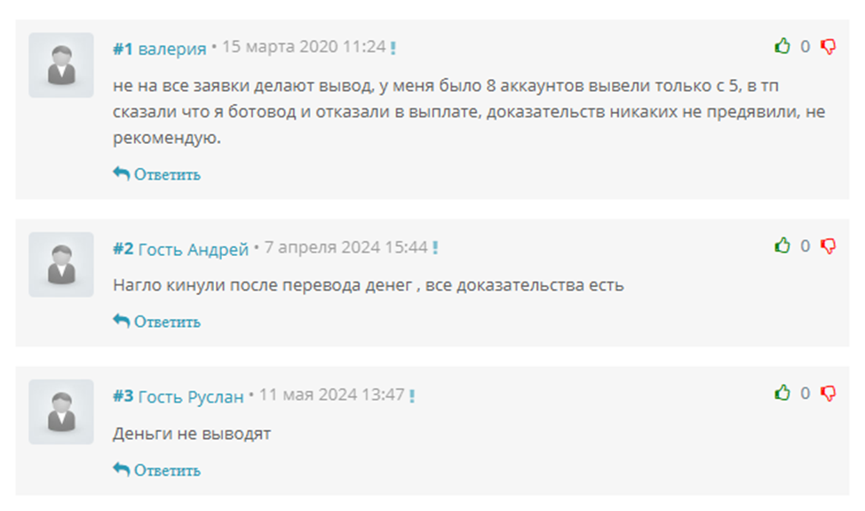 - негативные отзывы об отсутствии выплат по родственным проектам.